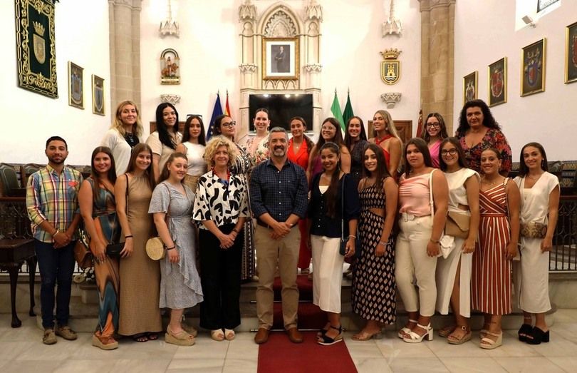 El alcalde de Rota, Javier Ruiz, junto a la delegada de Fiestas, Esther García, ha dado la bienvenida a las 18 damas del Rosario que representando a distintas peñas y entidades locales, así como a la Marina americana y la española, participarán como damas de las fiestas patronales de este año.