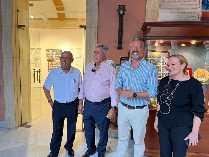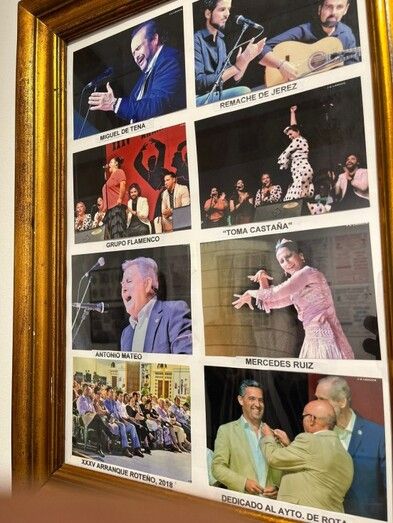 La exposición, organizada por la Peña Tertulia Flamenca "El Viejo Agujetas” contó ayer en su inauguración con miembros de esta peña, como su presidente Antonio Bergalo, y Antonio Mateo, de la junta directiva, acompañados también por el alcalde de Rota, Javier Ruiz Arana, y la delegada de Cultura, Encarna Niño.
