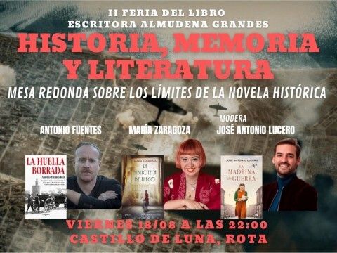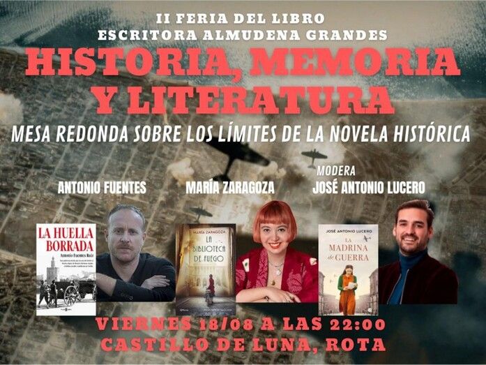 Participan el periodista y escritor roteño Antonio Fuentes, autor de "La huella borrada", novela sobre el último alcalde republicano de Sevilla; MarÃa Zaragoza, guionista y escritora autora de una prolÃfica obra de narrativa y Premio AzorÃn de Novela por "La biblioteca de fuego"; y José Antonio Lucero, profesor y escritor roteño autor de "La madrina de guerra" que será el encargado de moderarla.