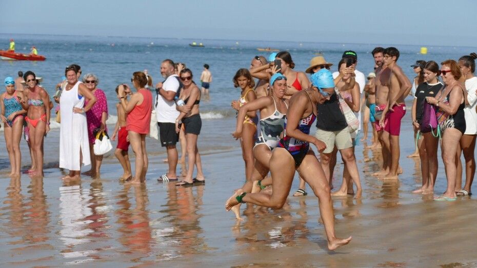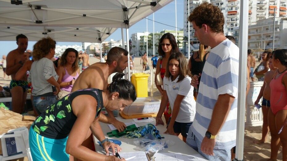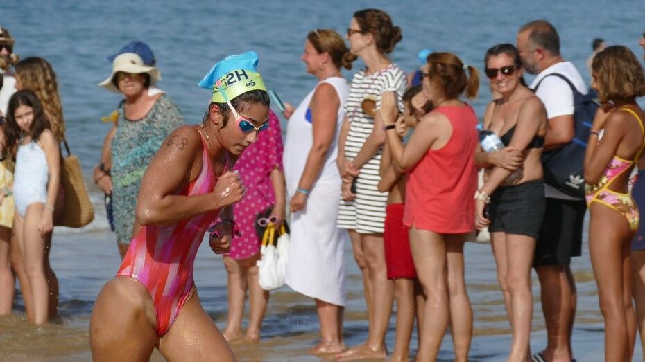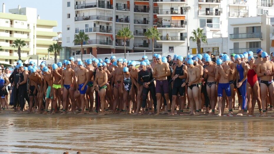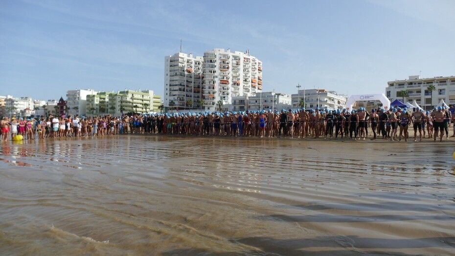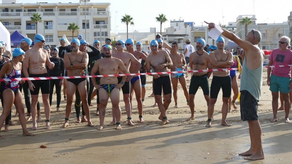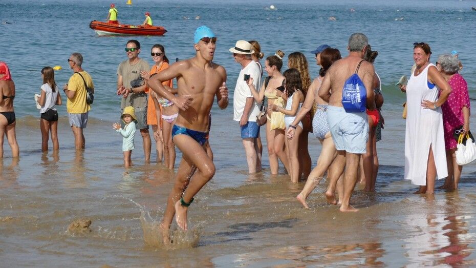 Con un calor sofocante que ya se notaba a primera hora de la mañana, los primeros en salir a nadar 2.000 metros de distancia han sido los inscritos desde las categorías junior a master 70. Unos 49 minutos tardaba el último en llegar a meta en completar el trazado, para dar paso a las categorías infantil y alevín tanto masculino como femenino, que han sido los que pasadas las once de la mañana, se lanzaban al agua vitoreados y animados por familiares y amigos o compañeros de club que se han dejado notar aplaudiendo y dando ambiente a una travesía que para ellos era de 1.000 y de 500 metros para los benjamines.