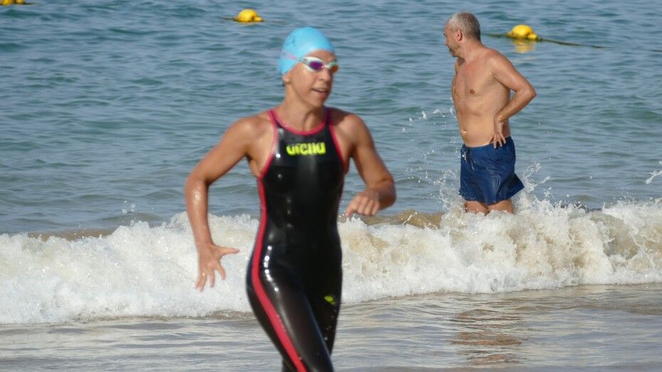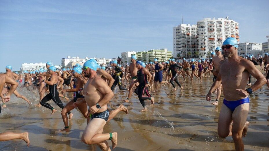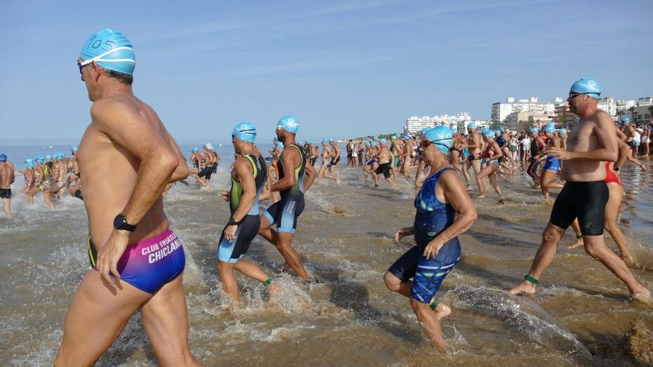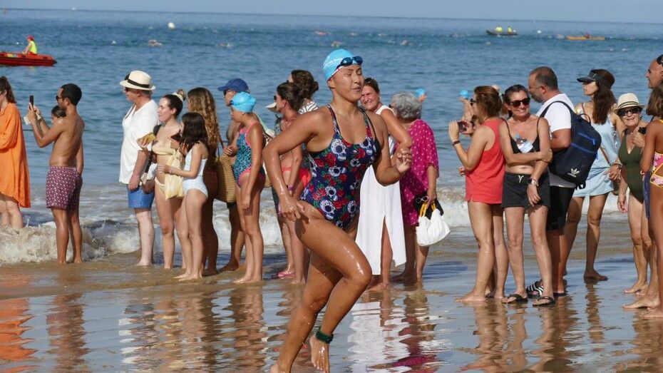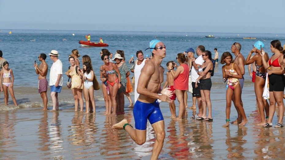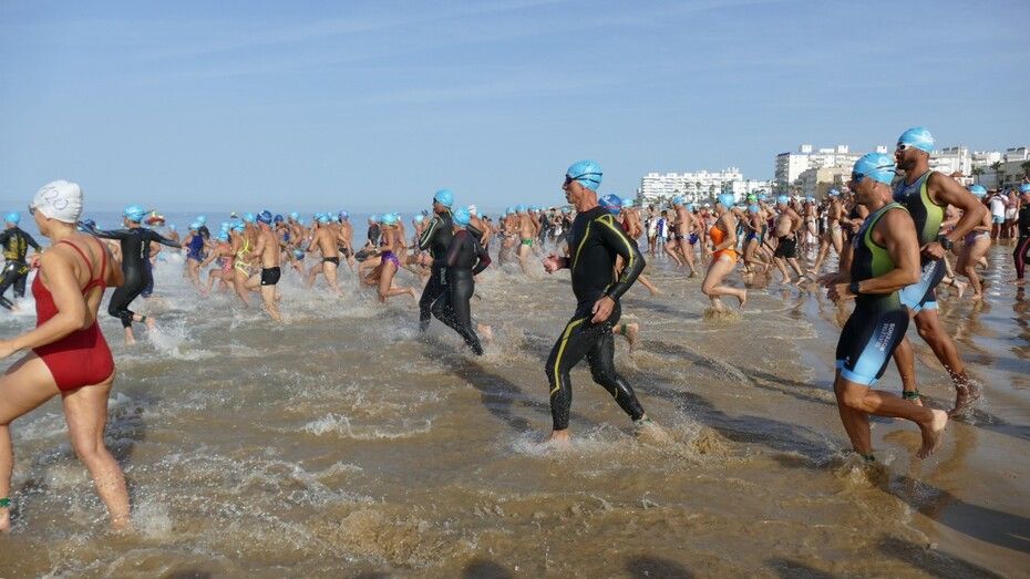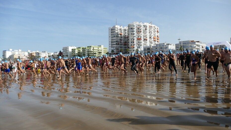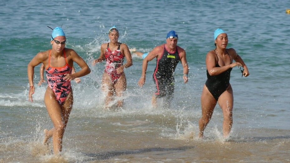 Con un calor sofocante que ya se notaba a primera hora de la mañana, los primeros en salir a nadar 2.000 metros de distancia han sido los inscritos desde las categorías junior a master 70. Unos 49 minutos tardaba el último en llegar a meta en completar el trazado, para dar paso a las categorías infantil y alevín tanto masculino como femenino, que han sido los que pasadas las once de la mañana, se lanzaban al agua vitoreados y animados por familiares y amigos o compañeros de club que se han dejado notar aplaudiendo y dando ambiente a una travesía que para ellos era de 1.000 y de 500 metros para los benjamines.