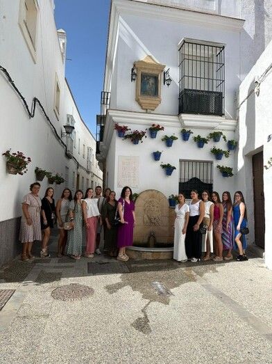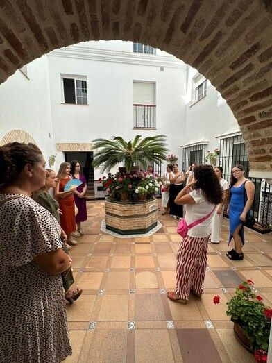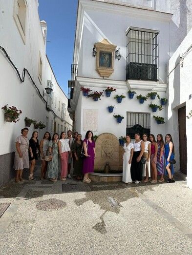 La delegada municipal de Fiestas, Esther García, daba la bienvenida a primera hora de esta mañana a las jóvenes que han visitado distintos enclaves de la localidad tan señalados como la parroquia de Nuestra Señora de la O, las típicas calles estrechas del casco histórico con adornos florales, casas patio, la 'Senda de la Poesía', etc.