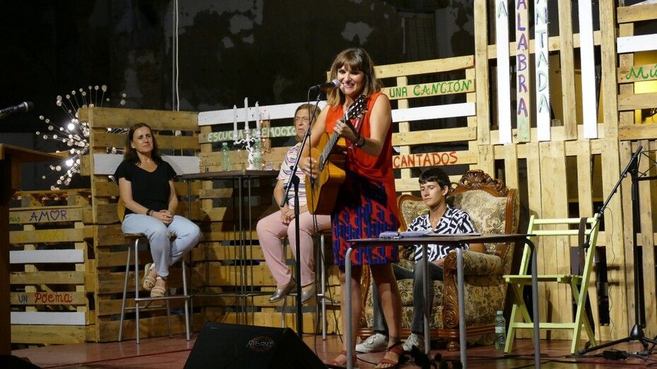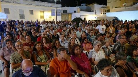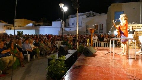 [Img #200648]En la noche veraniega llena de cultura, de música y sentimientos, la cantautora contó que un día pidió al escritor roteño Felipe Benítez Reyes, -que sin participar sobre el escenario es un apoyo fundamental en la organización de esta Noche de Literatura en la Calle-, que le escribiera unas letras dedicadas a sus padres: un sacerdote que dejó los hábitos cuando conoció a su madre creando un revuelo en el pueblo de aúpa y siendo tema tabú familiar de por vida. Rozalén compartió ayer con la guitarra -aunque lo suyo es la bandurria-, aquella creación literaria del poeta roteño que ella pudo musicar ante sus padres antes de que este falleciera el año pasado, siendo un regalo que emocionó y dejó claro por qué Felipe Benítez es uno de los autores más reconocidos del panorama literario.