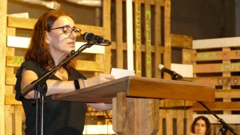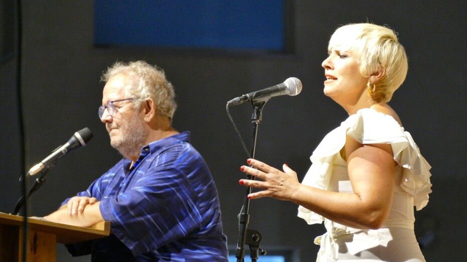 [Img #200657]Para terminar, invitó a Benjamín Prado a acompañarla en un dúo de música y poesía que tuvo presente a la mujer asesinada en Chipiona esta semana por violencia de género y que abrió esa "puerta violeta" que es himno contra el maltrato machista.