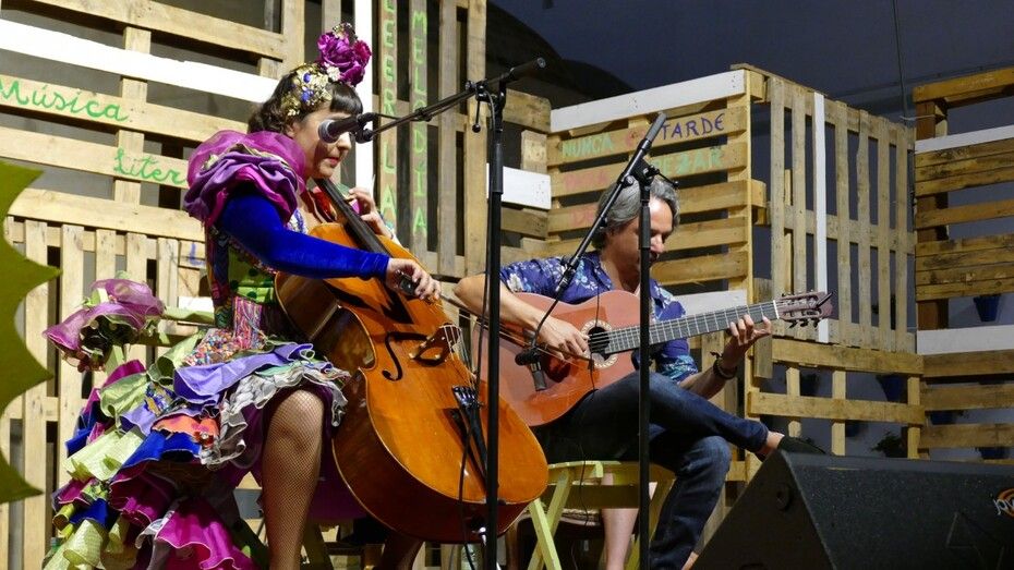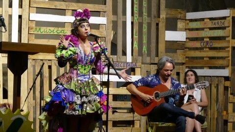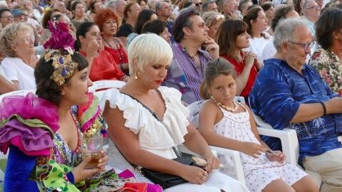 [Img #200630]Tras ellos, irrumpió en el escenario la cantautora de flamenco fusión Maui de Utrera que a color y volantes no le ganó nadie, tampoco a humor y puesta en escena porque dando perfecta muestra de sus conocimientos musicales, lo arropó con una vis cómica que forma parte de su estilo, aplaudido y divertido. Ella dio el primer giro al humor con la canción a la letra "ch", a situaciones cotidianas en el difícil arte de ligar o al amor con el conocido "Procuro olvidarte" que fueron parte de su repertorio para una noche que hizo que a algunos, incluso aunque la hora de la cena apretaba, quedaran con ganas de más. Y tras la utrerana todavía quedaban platos fuertes.