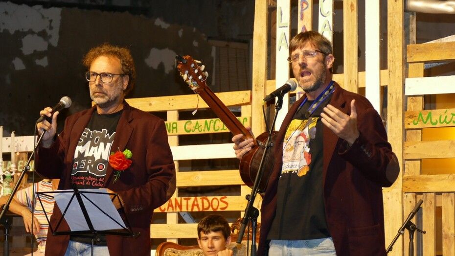 A la guasa que ya dejó en el escenario Duende Josele se sumó Chipi de La Canalla, un poeta callejero y carnavalero que en la copla se desenvuelve como pez en el agua y que no pudo disimular desde el minuto uno su gracia. Subió para pasarlo bien y hacer disfrutar entre cante y reivindicaciones dando su mejor versión humorística, haciendo participar al público e invitando a Manuel Martín-Arroyo, uno de los organizadores del evento, a sumarse con la guitarra al escenario que Manuel Barba preparó con mimo para una noche que empezaba a alargarse pero a la que aún le quedaba.