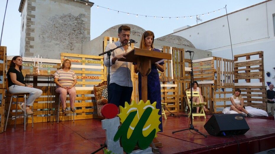 Abrían la noche los jóvenes Javier Sánchez y Cristina González de la asamblea local de IU, presentando esta suerte de encuentro de amigos literatos y músicos que tienen los roteños como anfitriones, y con la colaboración de miembros de Bombastic Teatro que hicieron de presentadores introduciendo el significado de estilos literarios o musicales, fueron dando paso a los participantes.