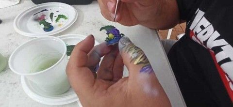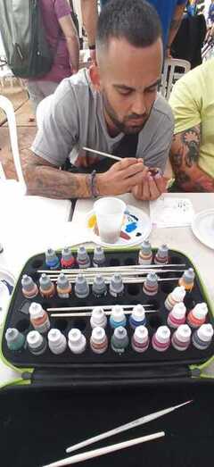 Los ciudadanos que se acercaron para mirar y comprar pudieron ver no solo los artículos a la venta sino demostración en directo de talleres y jóvenes artesanos e ilustradores, algunos de Rota, trabajando en el lugar y dando muestras de su destreza.