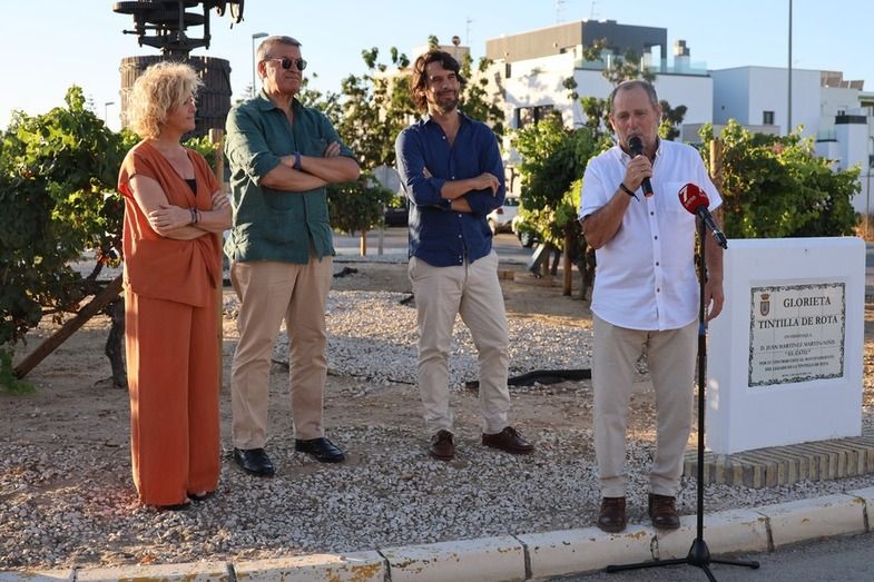 La asociación "T de Tintilla" se encarga de celebrar este acto simbólico y ya tradicional para ponerlo en valor y para ello, se elige a un padrino que inaugura la vendimia de las cepas plantadas en esta rotonda. Este año era Santiago Jordi, un enólogo y consultor de más de 50 viñedos al que esta entidad quiso reconocer su labor de promoción de los vinos de la tierra, entre ellas la Tintilla de Rota, como único varietal autóctono tinto de la provincia de Cádiz