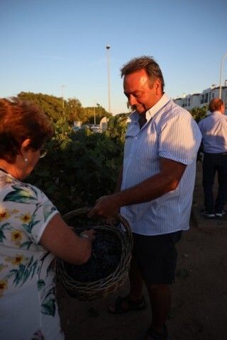Tras las intervenciones, personas galardonadas con este nombramiento en años anteriores, viticultores, miembros de la asociación y numerosos ciudadanos compartieron esta cita y se atrevieron a vendimiar la uva crecida en las cepas de esta rotonda con sabor tan roteño.