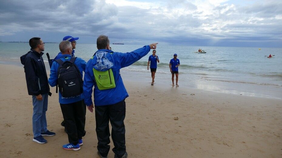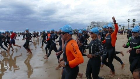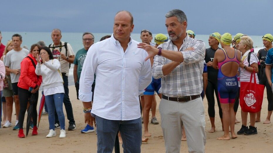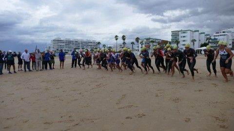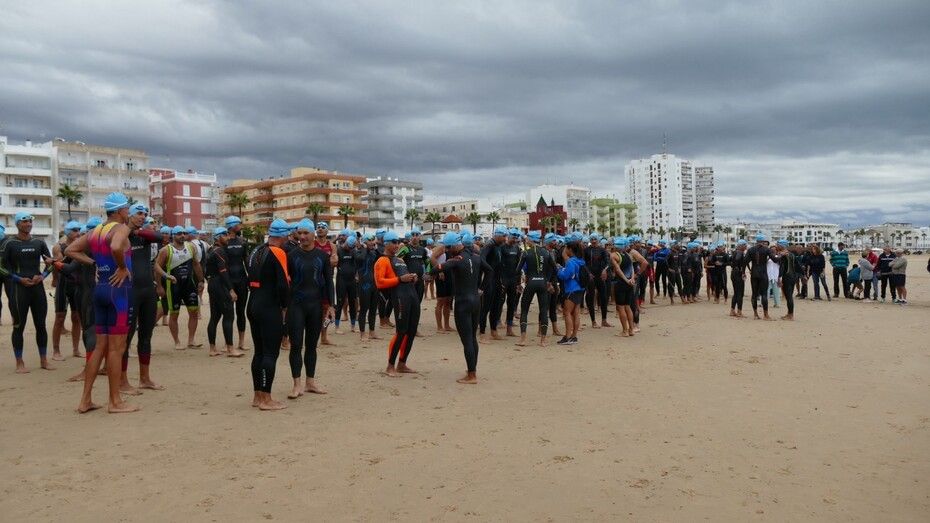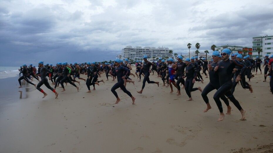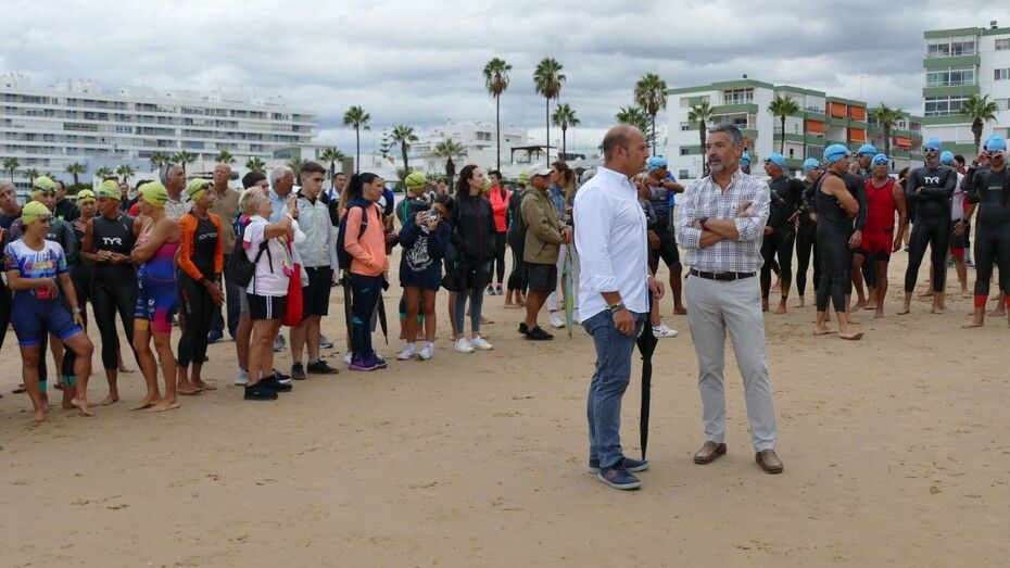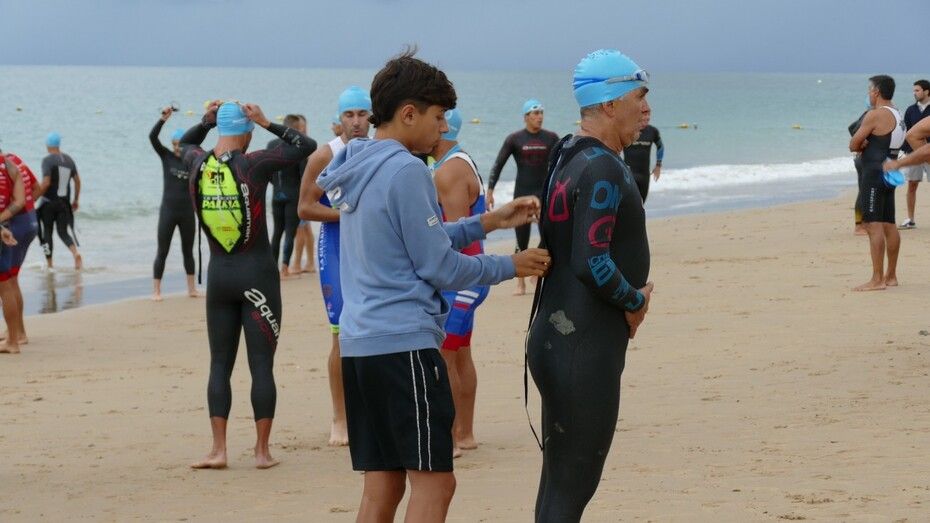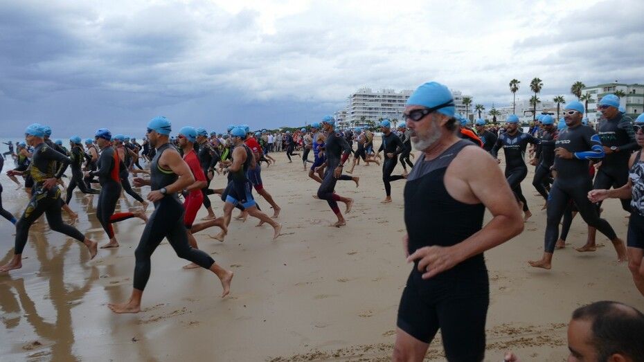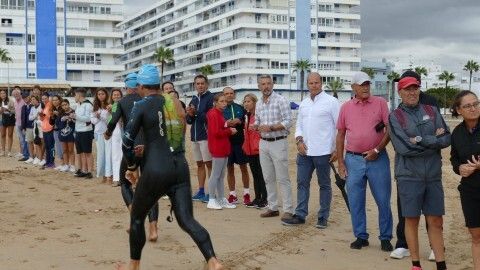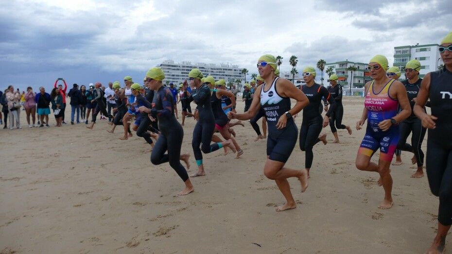 [Img #201136]Rota ha despedido hoy su verano deportivo como cada primer fin de semana de septiembre y lo ha hecho, como siempre, con la prueba estrella de todo el calendario estival, la XXVI Triatlón "Villa de Rota" que este año ha estado marcado por la amenaza de lluvia desde el principio y un buen chaparrón en su recta final.  Es más, la prueba, que este año contaba con 350 inscritos, de los cuales, medio centenar eran mujeres y el resto hombres, ha comenzado con unos 20 minutos de retraso debido a la posibilidad de que hubiera una tormenta eléctrica que habría impedido la salida de los triatletas. Finalmente, desde la organización, en contacto con otros organismos para ver las previsiones de tiempo, decidían comenzar la triatlón y a las 9.20 horas salían desde la playa de la Costilla a la altura de Santa Marta las categorías masculinas. Cinco minutos después lo hacían las casi 50 féminas con el pistoletazo que marcaba el alcalde de Rota, Javier Ruiz, acompañado del delegado territorial de Sostenibilidad, Medio Ambiente y Economía Azul, Óscar Curtido, y la delegada de Deportes, Luisa Fernández.