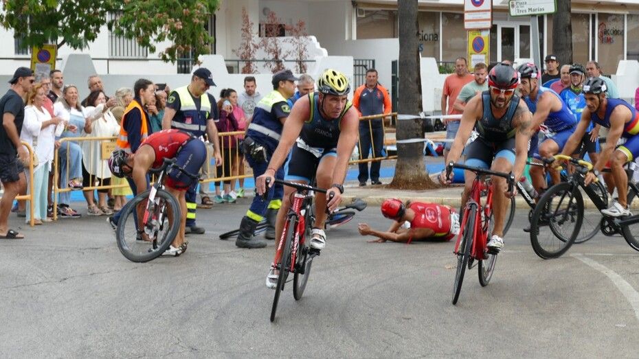 [Img #201277]Ante la situación, ha hecho falta que muchos metros antes del giro que provocaba las caídas en una mala combinación entre la velocidad que los participantes traían y el asfalto resbaladizo unido a la fina rueda de las bicis, voluntarios, Protección Civil y Policía Local tuvieran que extremar las llamadas de atención para que fueran bajando el ritmo, pero en algunos casos ha sido inevitable topar con el suelo. Han sido momentos de cierta preocupación por el público que cada vez que se acercaba un pelotón ayudaba gritando que fueran más despacio. Al margen de este contratiempo, que no ha provocado lesiones graves en los participantes, los triatletas han completado el circuito sin problemas, pasando este año por segunda vez, por el interior de la Base Naval de Rota cuando iban en bici, y como novedad, por dentro del puerto deportivo de Rota en la carrera a pie que ha discurrido por el paseo marítimo de la Costilla.