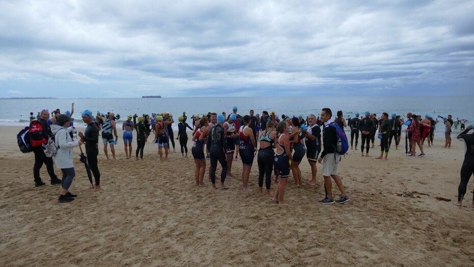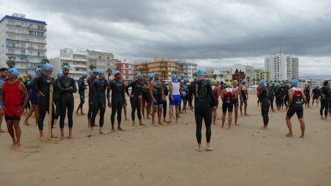 [Img #201246]Con el cielo gris, la amenaza de lluvia muy presente pero aguantando bien la situación, participantes con ganas de afrontar los 750 metros de natación, los 20 kilómetros de bicicleta y los 5 kilómetros de carrera a pie, y familiares y amigos animando e inmortalizando momentos, arrancaba esta edición que ha sido, sin duda, de las más sufridas no solo por los triatletas sino por el público. Y es que aunque el tramo a nado se ha desarrollado sin incidentes de ningún tipo, con embarcaciones de apoyo por si había algún percance, el circuito de bicicleta ha sido de lo más peligroso ya que la lluvia caída durante la noche y parte de la mañana que ha mojado el asfalto ha hecho resbalar a decenas de corredores cuando pedaleaban. El punto más conflictivo de todo el circuito ha sido el del giro a la altura de la rotonda de la plaza de las Tres Marías en Virgen del Mar, donde han ido cayendo los primeros ciclistas aunque afortunadamente, todos se han ido levantando por su propio pie reanudando la prueba.