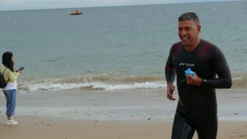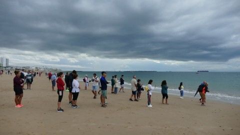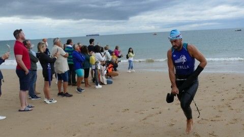 [Img #201199]En general, mucho público animando en puntos estratégicos pero sobre todo, a pie de meta y en las transiciones entre una  prueba y otra de esta Triatlón "Villa de Rota".  Familiares, amigos y compañeros de club que se han ido dispersando a medida que han ido entrando triatletas en meta y que han desaparecido prácticamente cuando a las 11 de la mañana comenzaba a llover con mucha fuerza marcando la recta final de la prueba para los últimos corredores. De hecho, al último de ellos, que hacía su entrada tras un tiempo de 1:53:13 con una lluvia muy copiosa y con el esfuerzo hasta el final de poder acabar la triatlón, era recibido por algunos miembros de la organización, la delegada de Deportes, Luisa Fernández, que le ha entregado la medalla como 'finisher', y los jueces todos bajo una pequeña carpa resguardándose del agua.