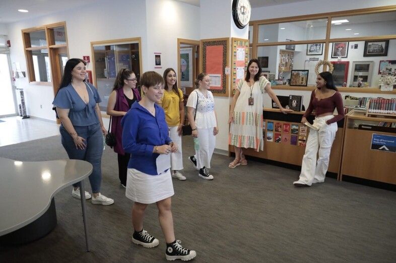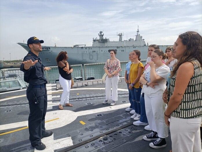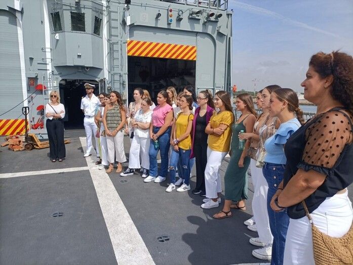 Las jóvenes han iniciado la jornada con un desayuno en el Club de Oficiales de la Marina española para continuar con un recorrido por la Base Naval, en el que pudieron conocer el instituto americano, donde compartieron experiencias con un grupo de alumnos norteamericanos, así como el muelle y la fragata ‘Numancia’, entre otros puntos.