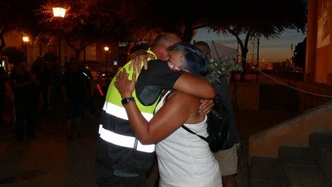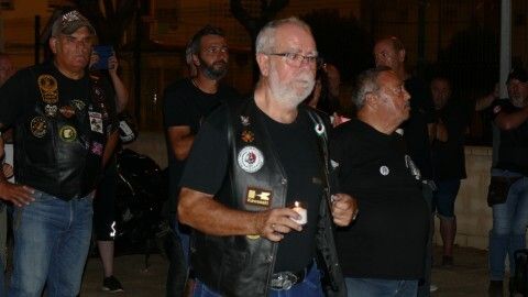 Medio centenar de motos y algunos moteros más, no solo de Rota sino de  localidades cercanas, han participado en este encuentro que comenzaba un poco antes de las nueve de la noche con un desfile de banderas que ha partido desde el parque Santa Cecilia, recorriendo algunas calles hasta llegar al centro y volver al punto de partida. Unos 15 minutos de recorrido con banderas y antorchas rojas en memoria de aquellos que fallecieron en accidentes de moto que ha dado paso luego a un momento de muchos sentimientos y emotividad.  Es el centro de este III Homenaje a los Caídos en el que, como ha dicho el presidente del Motoclub Hermandad Motera Roteña, Miguel García de Quirós, aunque es verdad que no hace falta ningún día especial para recordar a los seres queridos que ya no están, esta ofrenda con velas ante su patrona, la imagen de Nuestra Señora de la Estrella de San Antonio de la asociación cultural Getsemaní, y el sonido de las motos se les dedica con mucho cariño "para que nos oigan ahí arriba".