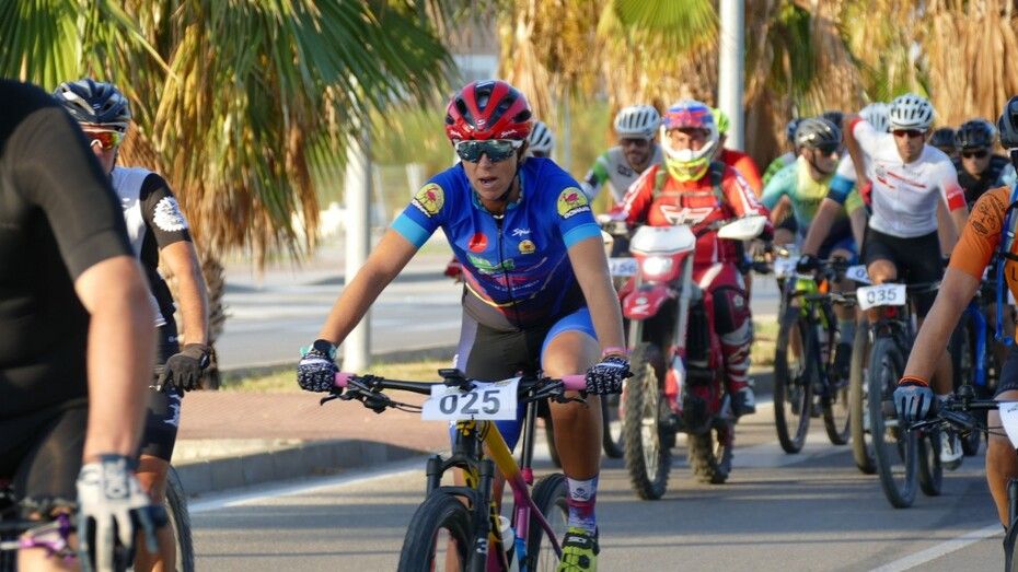 La delegada de Deportes, Luisa Fernández, ha querido acompañarlos en la salida y en algunos puntos de una media maratón que se enmarca en el circuito provincial XCM Series Cádiz 2023.