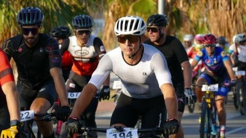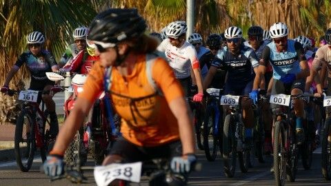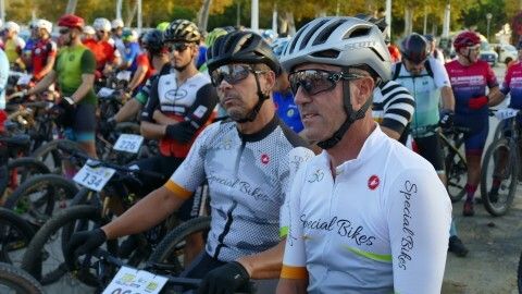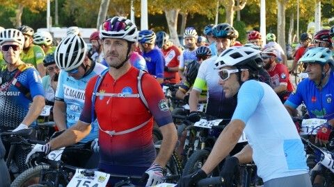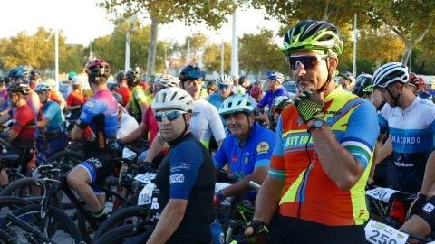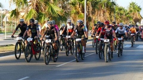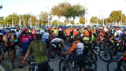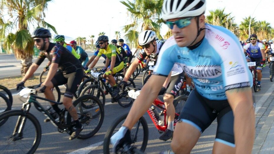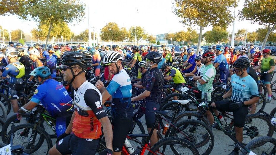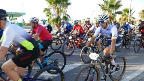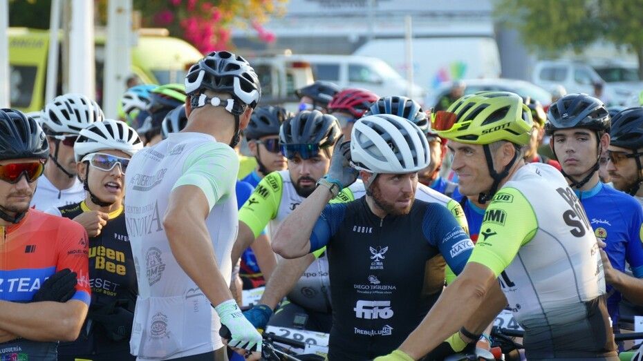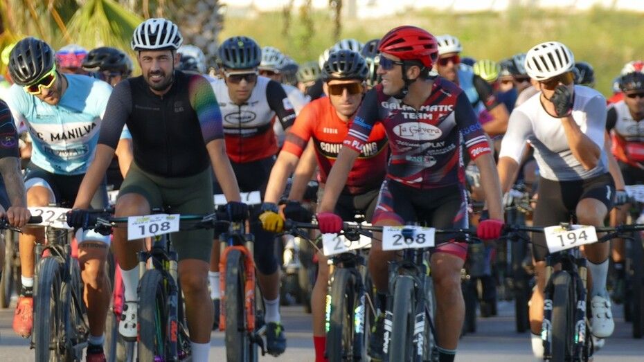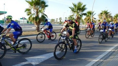 Minutos antes ya estaban colocados en la línea de salida y aunque hasta que no han pasado por el inicio de la vía verde no ha empezado a contar el recorrido de 50 kilómetros que afrontan, a los ciclistas se les ha podido ver en un recorrido neutralizado por varias avenidas de la localidad, donde han pasado en pelotón para, una vez iniciada la BTT como tal, empezar a tomar distancias entre unos y otros.