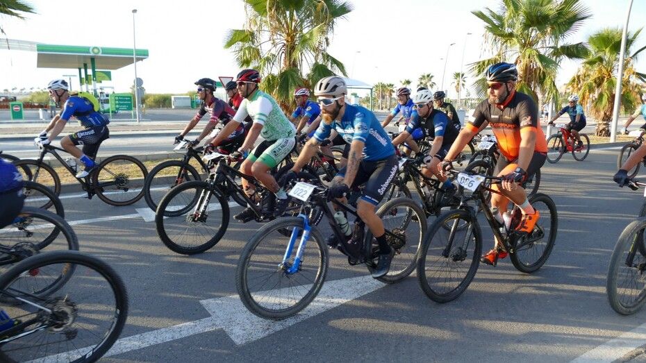 A las nueve de la mañana han partido desde el recinto ferial los ciclistas que en esta nueva edición participan en la XIII Media Maratón BTT "Villa de Rota", una prueba deportiva perfecta para los amantes de la bicicleta de montaña que disfrutan recorriendo caminos rurales del término municipal de Rota.