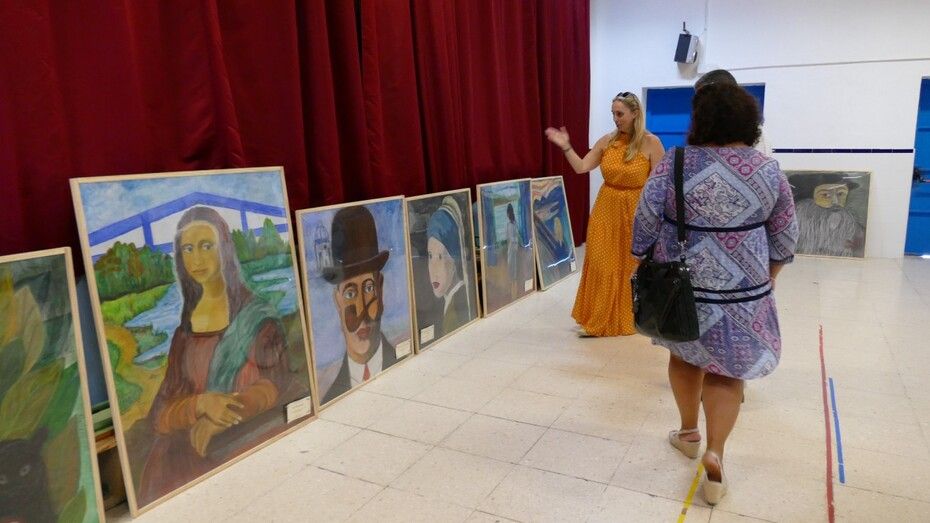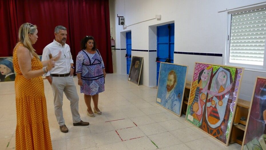[Img #202066]Sin ir más lejos, hoy le mostraba al alcalde de Rota el resultado de un taller de pintura que los alumnos de 6º de Primaria del pasado curso realizaron en la asignatura de Artes Plásticas, con la colaboración de una profesora jubilada, la Seño Rosi, en el que pintaron cuadros muy reconocidos añadiéndoles motivos roteños. Un retrado de Picasso, la Mona Lisa, 'El grito' de Munch, un retrato de Frida Kahlo o el autorretrato de Van Gogh  son algunos de los cuadros pintados con un excepcional resultado que servirá, como decía la directora del centro, para que la huella de los alumnos que se marcharon el curso pasado, quede en este centro.