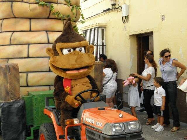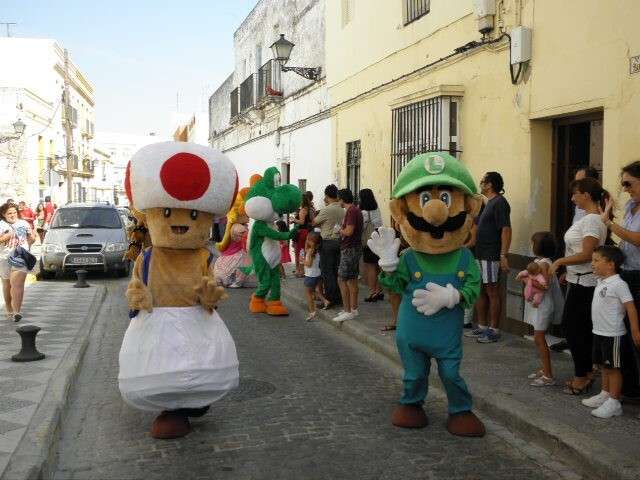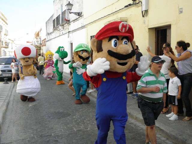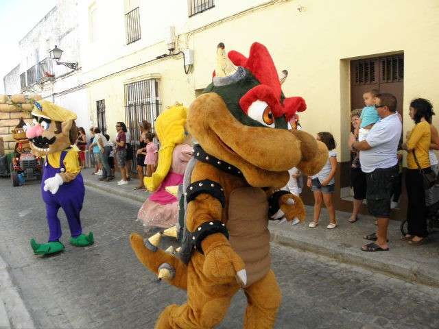 Era la Banda de Cornetas y Tambores de la Fundación Alcalde Zoilo Ruiz-Mateos las que abría paso a los personajes más televisivos precedidos, como siempre, por los dos míticos gigantes que desde hace años abren el cortejo. Siguiéndolos, los más pequeños han podido disfrutar de los Picapiedras, los muñecos del Super Mario, peculiares toreros, los tres cerditos, los personajes de la serie Barrio Sésamo o Astérix y Obélix. Este año tampoco ha faltado la figura del toro que embistiendo a los más atrevidos, ha hecho correr, y hasta sudar a los que se han puesto delante de su camino.
