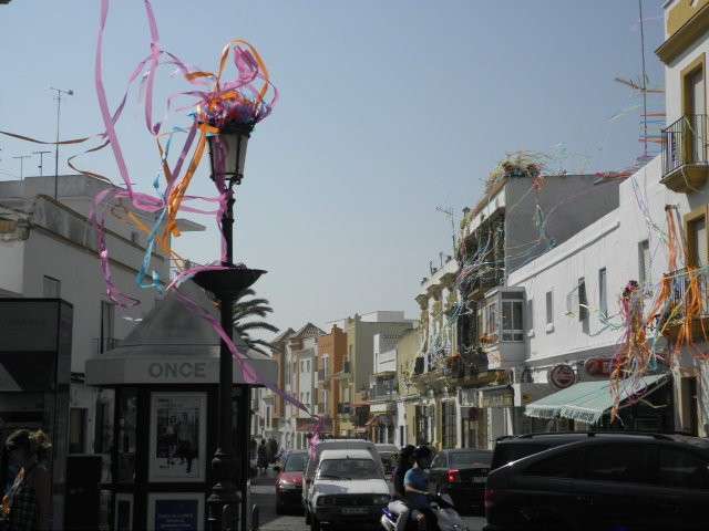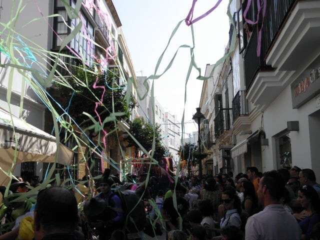 El levante ha jugado una mala pasada a más de uno que se ha visto enredado en largas tiras de papel de colores que a su vez quedaban enredadas en farolas, cables y balcones llenado las calles de colorido y alegría. De hecho, durante las dos horas de recorrido, la cabalgata de Gigantes y Cabezudos ha llenado el casco urbano de Rota de padres, niños, jóvenes y mayores que han disfrutado al son de este cortejo que sobre las dos de la tarde, volvía a la avenida San Juan de Puerto Rico para disolverse.