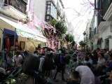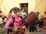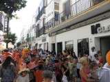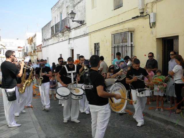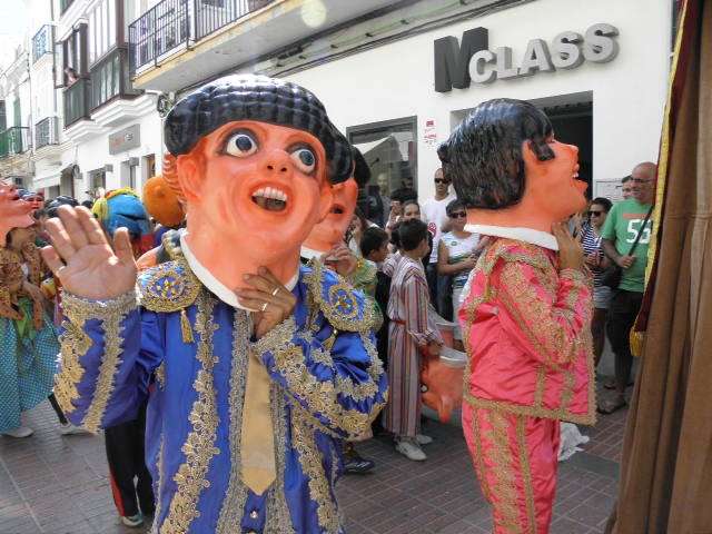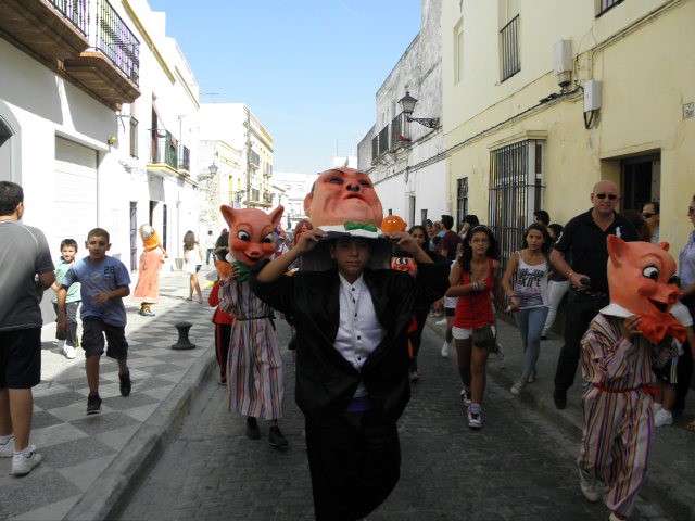 Desde la avenida San Juan de Puerto Rico, este pasacalles partía en torno a las doce del mediodía. Dado que es en esta zona de Rota donde más fuerte pega el viento de levante, los Gigantes y Cabezudos han pasado bastante deprisa aunque luego han rebajado el ritmo respaldados por otras calles en las que el viento dejaba disfrutar de la música y el ambiente de la cabalgata. Los muñecos han empezado entonces a saludar y pararse con los más pequeños, algunos, más receptivos que otros aunque todos sorprendidos por los colores y la animación.