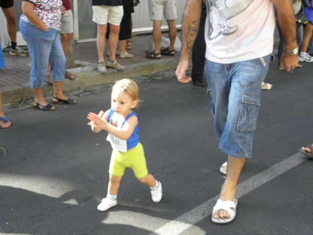 Durante la carrera se pudo ver de todo, desde los más competitivos, a los que dejaron sus fuerzas para el sprint final, los que se cayeron intentado llegar a meta antes que su predecesor y los que en la salida iban con tantas ganas que también fueron a parar al suelo. El broche final lo pusieron los pequeños de la categoría pañal y pitufo, un buen grupo de niños de entre 1 y 5 años corrían para completar su circuito de 150 metros, la mayoría, que apenas sabía andar lo hicieron de manos de algún adulto pero todos consiguieron su medalla por participar.