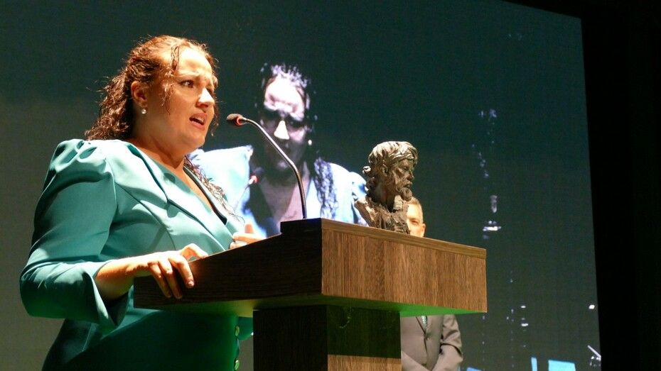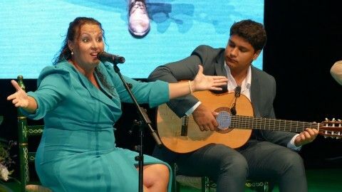 Los presentes pudieron escucharla en vivo arrancándose por Rocío Jurado y su conocido 'Qué no daría yo' disfrutando del chorro de voz de esta roteña que puso la nota musical a la gala. Una gala que antes, tendría que entregar el último homenaje a la compañía Bombastic Teatro, con su director Rafael Martínez Lluelma a la cabeza, del que es también su 20 aniversario.