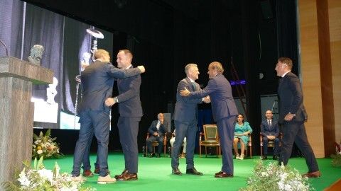 Su presidente Javier García Moreno, en nombre de la junta directiva con la que compartió escenario para recibir el galardón, dio por tanto las gracias a todas esas personas, socios, amigos, familias, partidos políticos y otras entidades que les ayudaron en momentos tan difíciles. Este premio, era para todos, pero además, para todas las entidades, clubes, hermandades, asociaciones o peñas que trabajan de forma altruista por el bien de los demás, quitándose tiempo propio para ayudar.