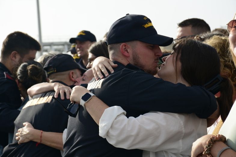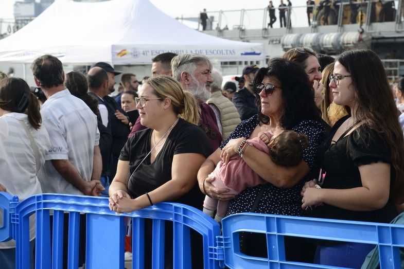 Esta mañana, besos y abrazos, junto a alguna lágrima han protagonizado momentos de despedida de la dotación y sus familiares a los que volverán a ver en febrero.