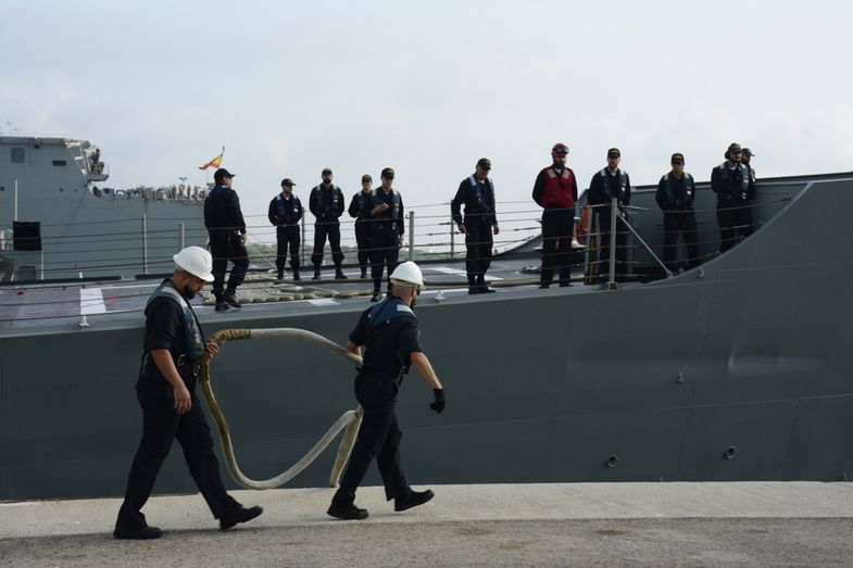 Serán cuatro meses y medio los que el buque de la Armada tiene previsto permanecer desplegado en las proximidades del Cuerno de África, recibiendo esta mañana la dotación una despedida cariñosa de sus familiares y amigos durante una ceremonia que ha estado presidida por el Almirante de la Flota, Eugenio Díaz