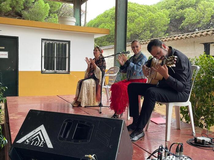 La jornada, pese al mal tiempo que no ha echado para atrás a la gente del campo, sino que vive con alegría la llegada de la lluvia, ha continuado con buen ambiente de convivencia y la actuación de Laura Pirri y una exhibición ecuestre a cargo de Manuel Piruat del club 'Las lagunetas', bailando por sevillanas.