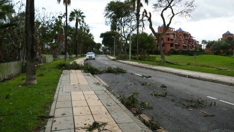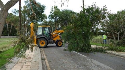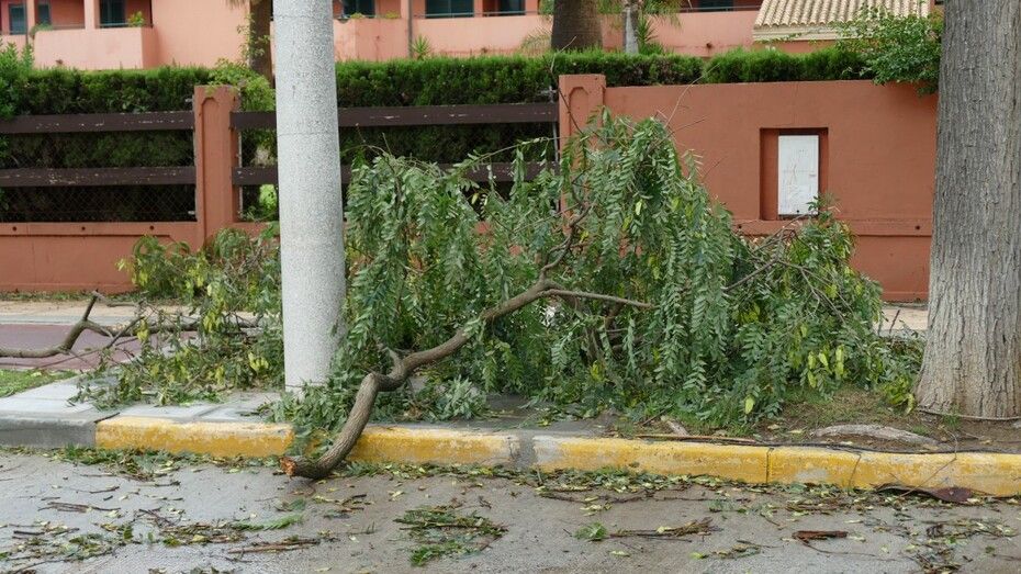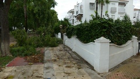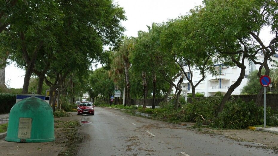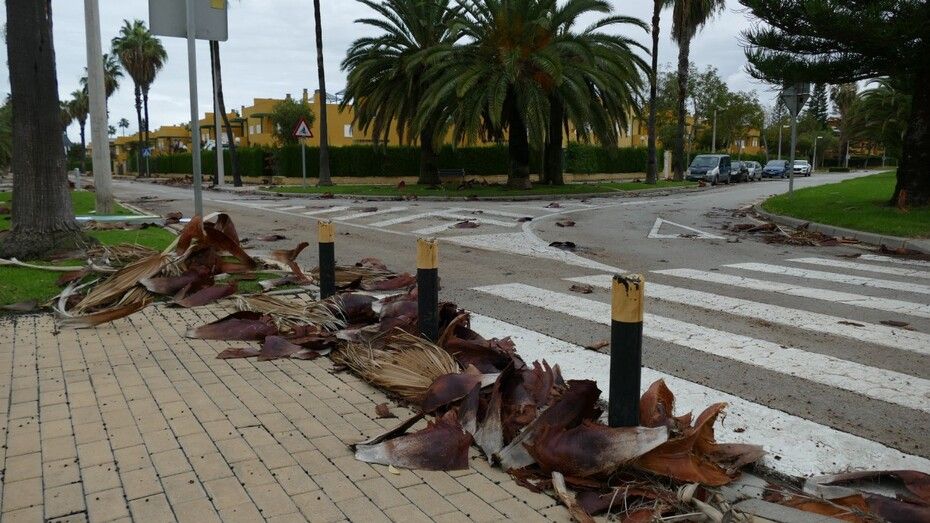 [Img #205238]Aún no se puede cuantificar las pérdidas sufridas en la masa arbórea ya que desde la Entidad Urbanística de Conservación (EUC) de Costa Ballena no dan abasto para retirar ramas, árboles, hojarasca y algunas señales de tráfico o luminarias tumbadas por el fuerte viento. Queda hacer recuento y redactar informes para ver el alcance real del paso de esta borrasca que ha azotado con fuerza.
