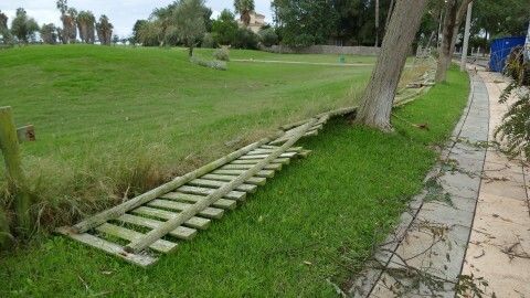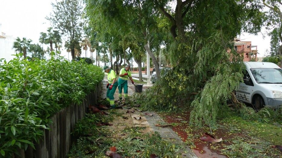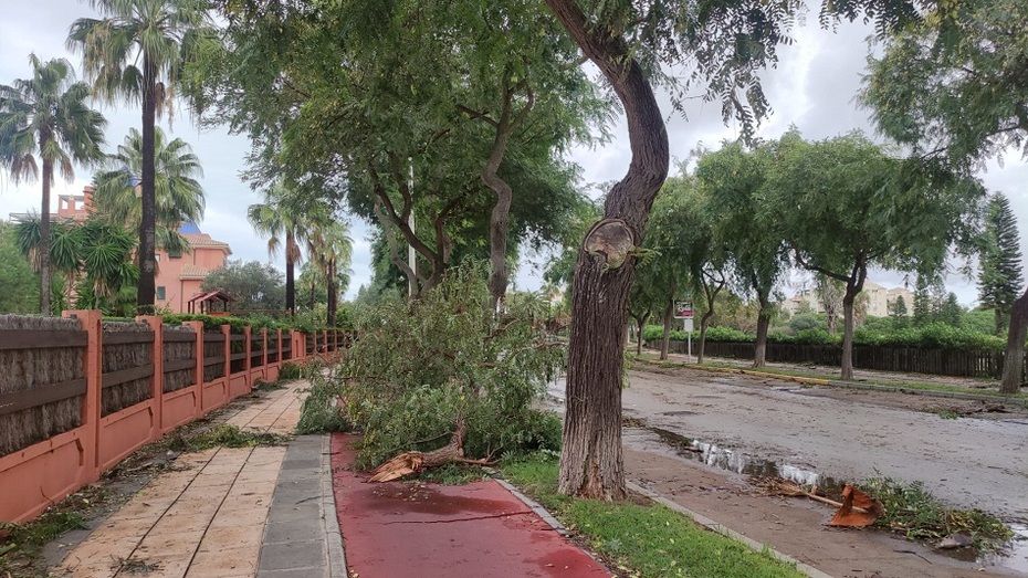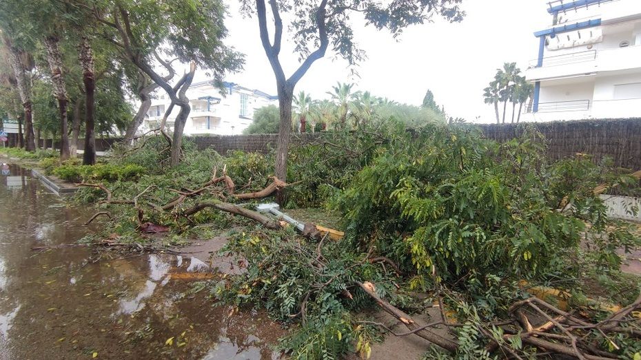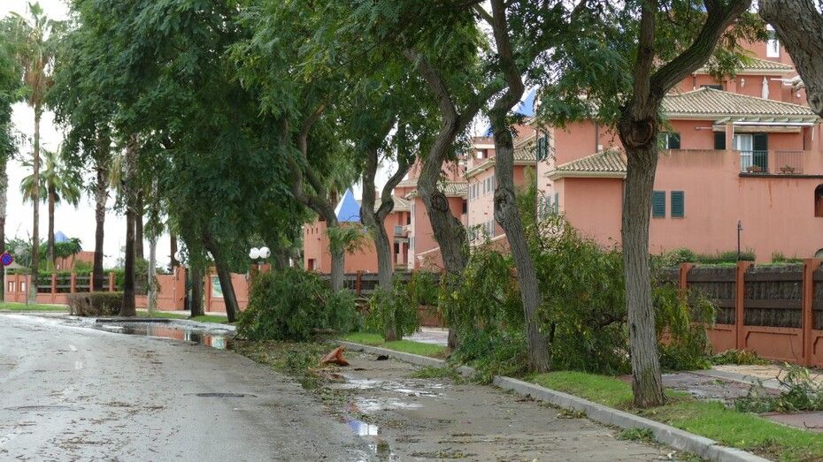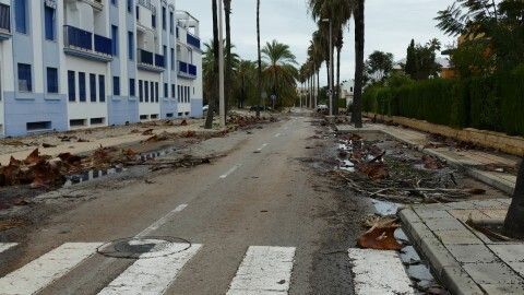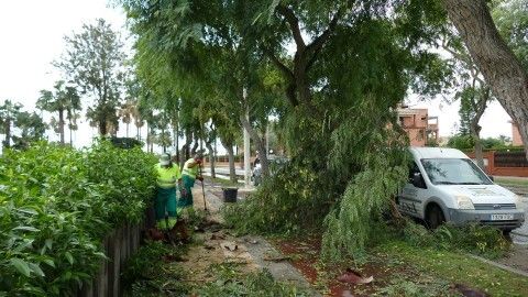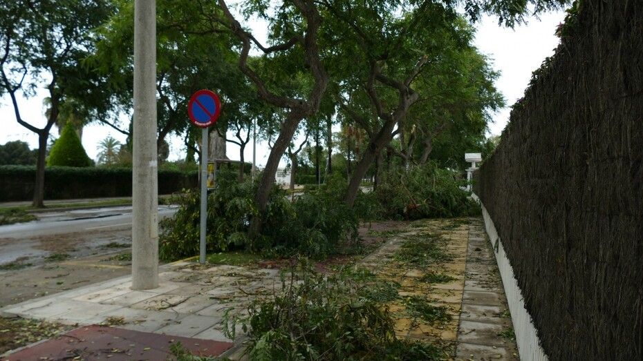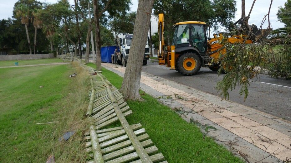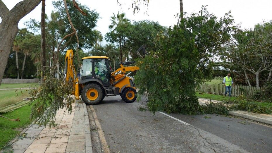 Avenidas como Reina Sofía, Urta, Carla de Orleans o parques como Río Albero o Ballena de los Niños han padecido numerosas incidencias provocadas por el fuerte viento que tuvo una media de 90 km/h de fuerza, lo que provocó innumerables ramas de árboles tronchadas, muchas de envergadura, que al caer sobre  vallas de cerramiento como las del campo de golf y algunas urbanizaciones, provocaban un doble daño.