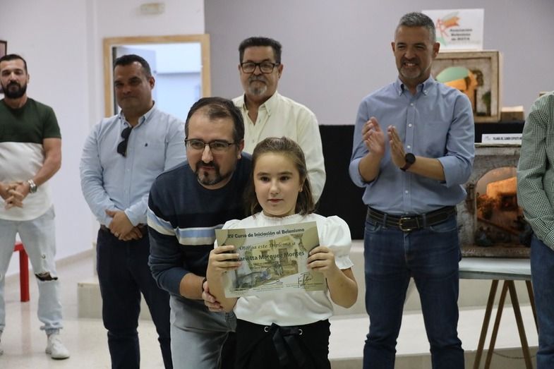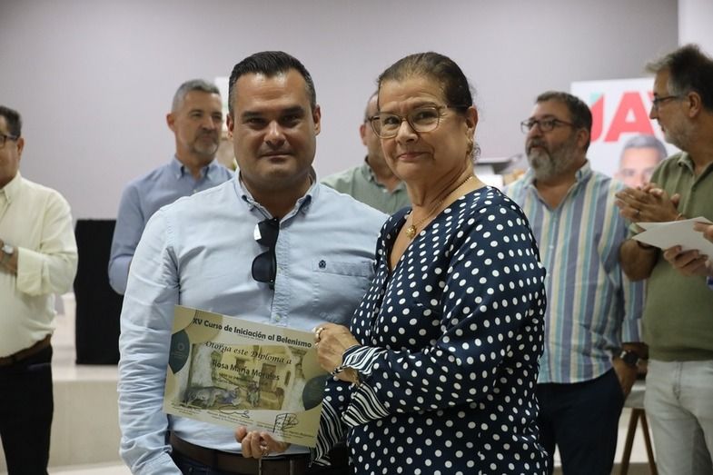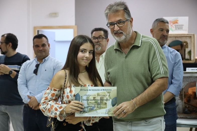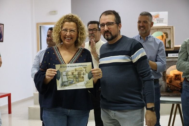 El alcalde de Rota, Javier Ruiz, así como el delegado de Participación Ciudadana, Manuel Jesús Puyana, y otros miembros del gobierno, junto al presidente de los belenistas, Miguel Moreno y representantes de 'Camino de Belén' participaron en la entrega de diplomas a todos los alumnos del curso felicitándoles por el buen trabajo.