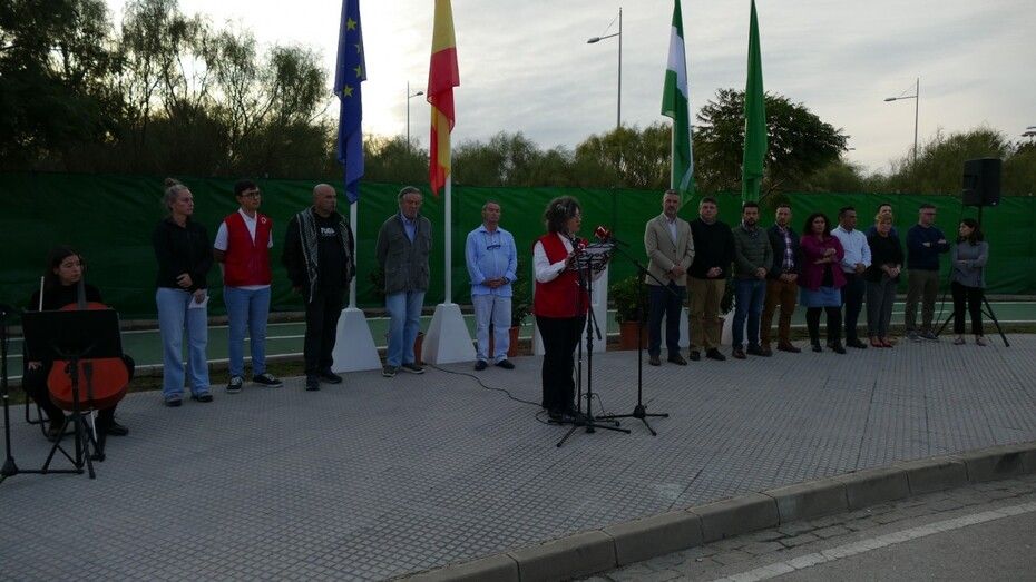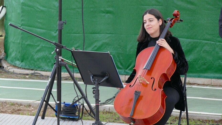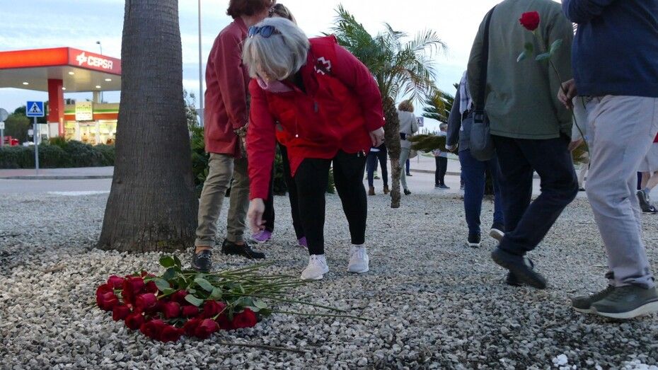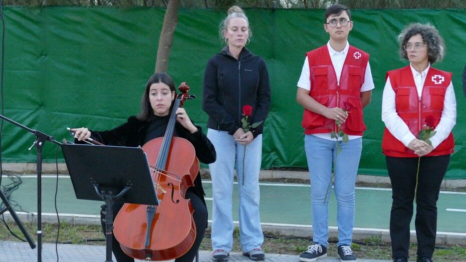La violonchelista Andrea Griffin, que interpretó una pieza al inicio del acto, fue también la encargada de cerrarlo mientras en el centro de la rotonda dedicada a los 37 inmigrantes de la patera de Rota, los ciudadanos presentes fueron depositando 37 rosas rojas en su memoria.