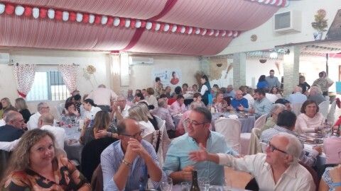 La caseta de 'El Taxi' se ha llenado de comensales que con el pago de su cubierto (40 euros por persona) ha contribuido a recabar fondos que, aunque no son todavía suficientes, ayudan bastante a la familia de este joven que enamora a quien lo conoce.
