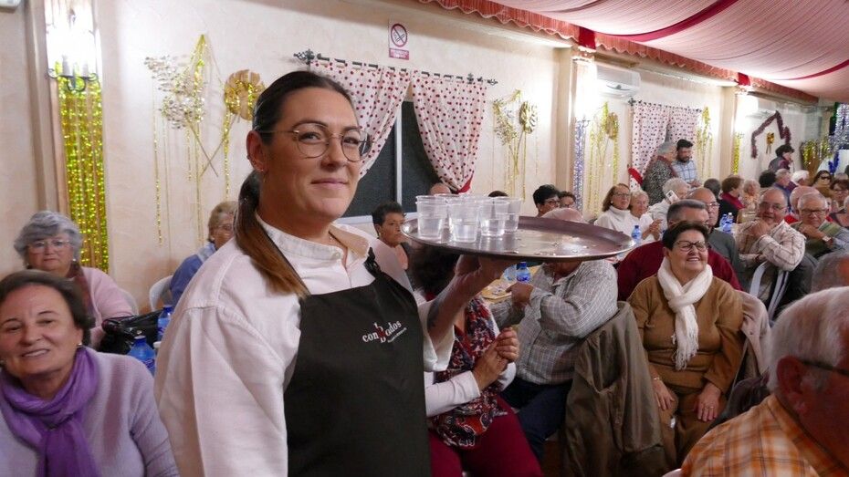 [Img #207421]La larga cola para entrar esta tarde se formaba mucho antes de que se abrieran las puertas de la caseta pero todos los mayores han podido tener su sitio sentados y han disfrutado en mesa de los más de 20 kilos de pestiños elaborados por algunos mayores y los voluntarios de la 'Cocina solidaria', los más de 40 kilos de polvorones, otros tantos kilos de churros, café, chocolate, refrescos y hasta copita de anís. Un ambiente propicio para lo que ha sido una tarde que los asistentes han agradecido destacando el buen servicio, la buena organización y la buena música.