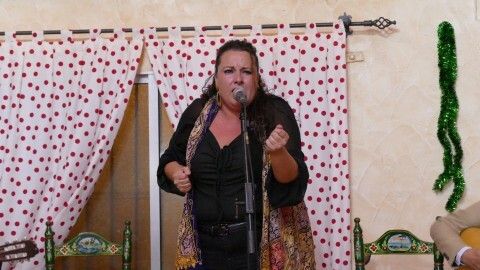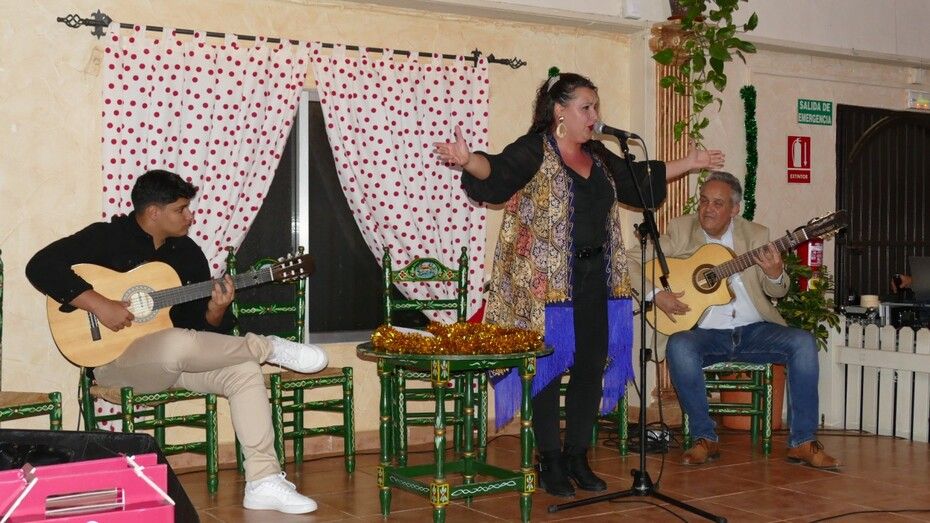 [Img #207450]Tras el cante de Rocío Ruiz en algo más de una hora, llegaba el sorteo de regalos entre los asistentes, con flores de pascua, caja de polvorones, embutidos, botellas de vino  y hasta jamones, y se daba paso así al grupo jerezano 'Gloria bendita', que ponía la guinda a una tarde de mucho arte navideño.