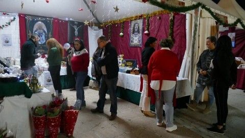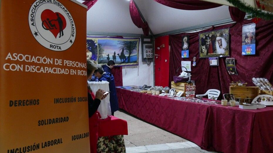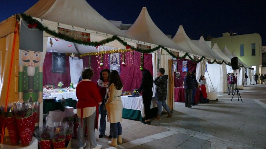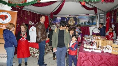 Mientras, en los 15 stands preparados, la Hermandad del Santo Entierro, la Hermandad de la Veracruz, la Asociación de Personas con Discapacidad, Arofi, la protectora de animales 'Siempre contigo", la Hermandad del Amor, la Hermandad de la Salud, 'Aula TGD', 'Huertos Tehigo', el Banco de Alimentos, la Hermandad del Rosario, la Hermandad del Carmen, la Hermandad del Nazareno y la parroquia de Nuestra Señora del Carmen, ya que Belén - Tierra Santa no estaba puesto hoy, han expuesto los artículos con cuya venta pretenden sacar fondos para causas benéficas o para ayudar a la propia hermandad o asociación.