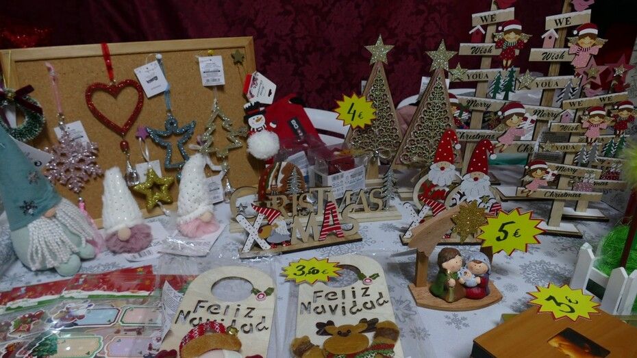 Es un mercado de corte diferente al que empezará a partir del día 5 de diciembre, en el que ya participarán comercios de la localidad con otro tipo de productos. De momento, hasta el día 4, la plaza de la Merced, decorada con algunos motivos navideños por parte de la delegación de Fiestas, se centra en puestos con fines sociales.