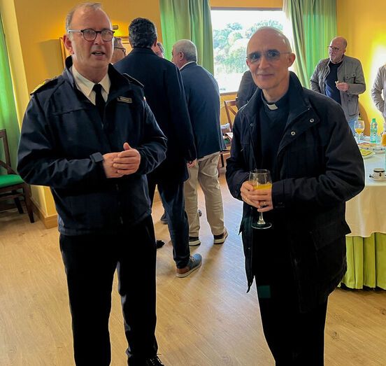 [Img #207909]Tras la charla que sirvió de primera toma de contacto, el grupo se trasladó hacia la FLOAN, donde el Almirante Jefe del Arsenal de Cádiz compartió un café y donde también estuvieron presentes el Jefe de Servicios Generales CN. Rafael Prieto y el Comandante de la Flotilla de Aeronaves C.N. José Emilio Regodón.