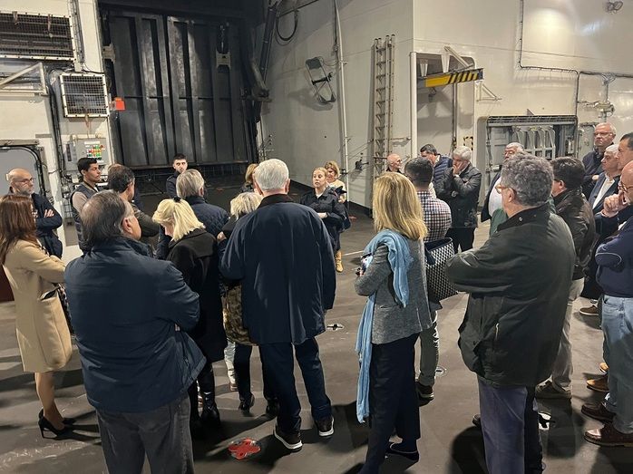 La visita se inició con un breve informe sobre la Base y su impacto económico en la bahía, cotando con la presencia del jefe del OAJ del ALARDIZ, C.N. Luis Rodríguez Garat, que brindó al grupo una charla informativa sobre el rol de la Armada en España y a nivel global, presentando los recursos disponibles en Rota y destacando su impacto económico, que supera los 500 millones de euros anuales. Estos fondos se distribuyen principalmente en áreas como las nóminas de la Armada en la Base (230 millones), contratos por parte de la Armada española (100 millones) y los fondos ejecutados por la Navy, destinados a nóminas y asistencia para vivienda de militares estadounidenses (230 millones). Son datos que destacan el papel de la Armada como uno de los principales motores de generación de riqueza y empleo en la provincia, por donde pasan a diario 12.000 vehículos.