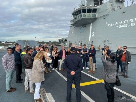 La visita continuó con un recorrido por la Flotilla de Aeronaves, donde el grupo recibió información por parte del personal designado, explicando las funciones de cada escuadrilla y las labores cotidianas, hasta finalizar con una visita a el buque insignia de la Armada española, el 'Juan Carlos I'.