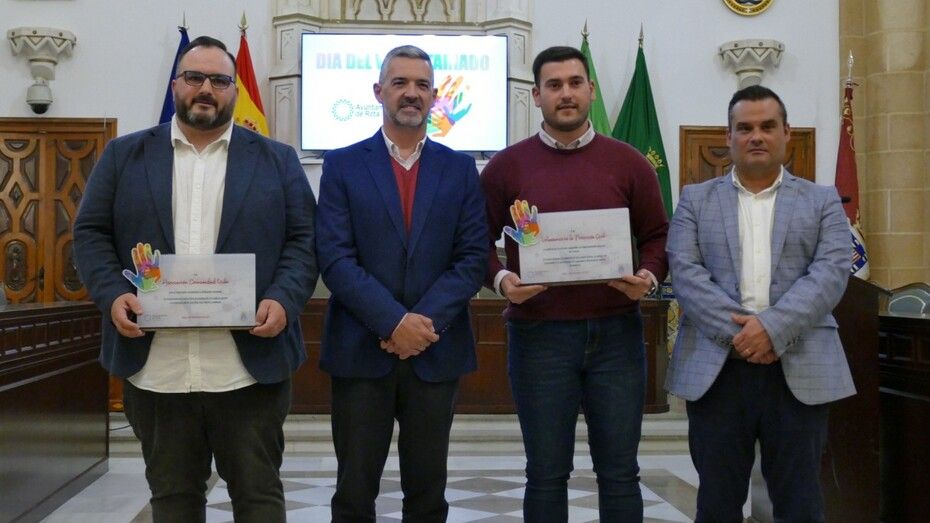 Con el alcalde de Rota, Javier Ruiz a la cabeza, y la presencia del delegado de Participación Ciudadana, Manuel Jesús Puyana, se ha llevado a cabo la entrega de los reconocimientos al voluntariado de Protección Civil y a la asociación 'Comunidad vida', por la labor que cada uno en su terreno realiza en favor de los demás y que ha sido reconocida por el Ayuntamiento de la localidad como ejemplos de la suerte que Rota tiene de contar con un tejido tan amplio y variado de voluntarios y entidades de ayuda.