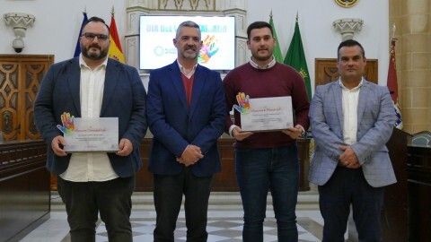 Tras felicitar a los dos homenajeados, fue el alcalde de Rota el que junto al delegado de Participación Ciudadana entregó su reconocimiento a Domingo Durán en representación de la asociación 'Comunidad vida' y a Pablo Izquierdo como voluntario de Protección Civil.