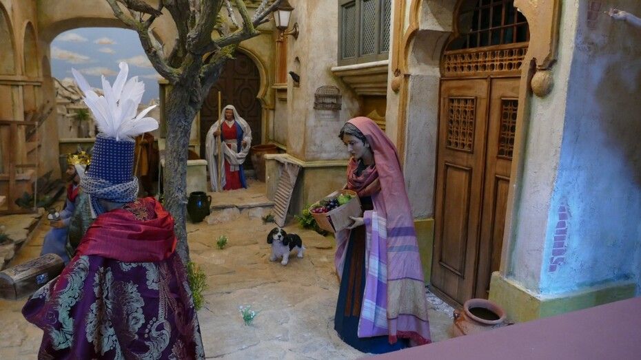 Un pueblo hebreo con imágenes de un metro de altura ambienta el belén de la Hermandad de los Dolores