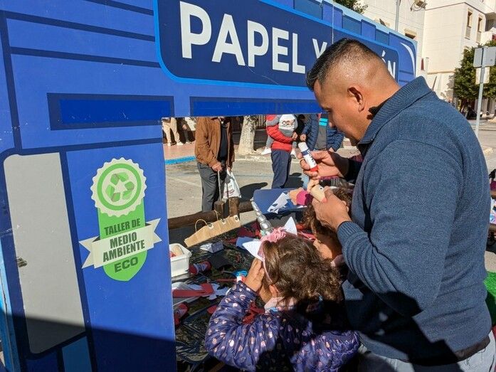 Además, se han desarrollado algunos talleres medioambientales, de reciclaje, de vidrio, cartón, etc., y manualidades donde los pequeños han participado.
