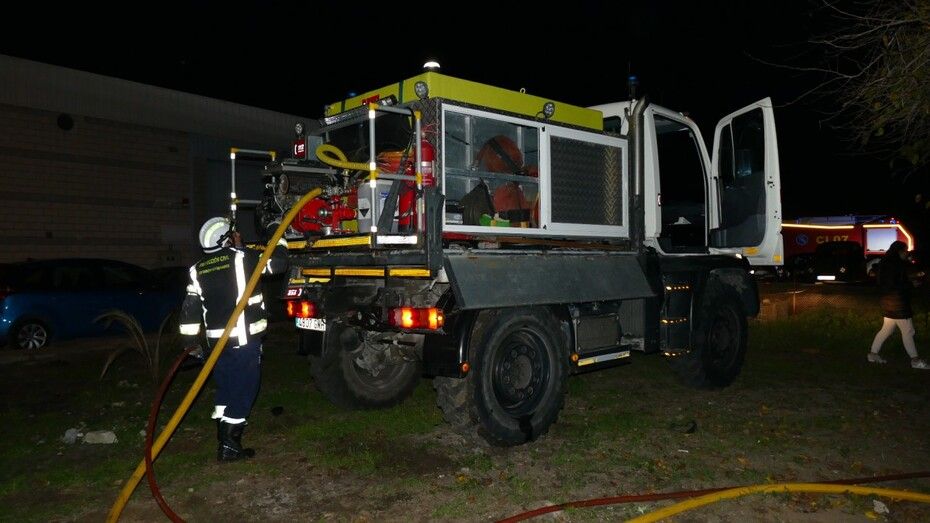Una vez que se han controlado las llamas, los trabajos se están centrando en enfriar lo ya apagado para evitar que se avive alguna chispa y asegurar todo el perímetro por seguridad.